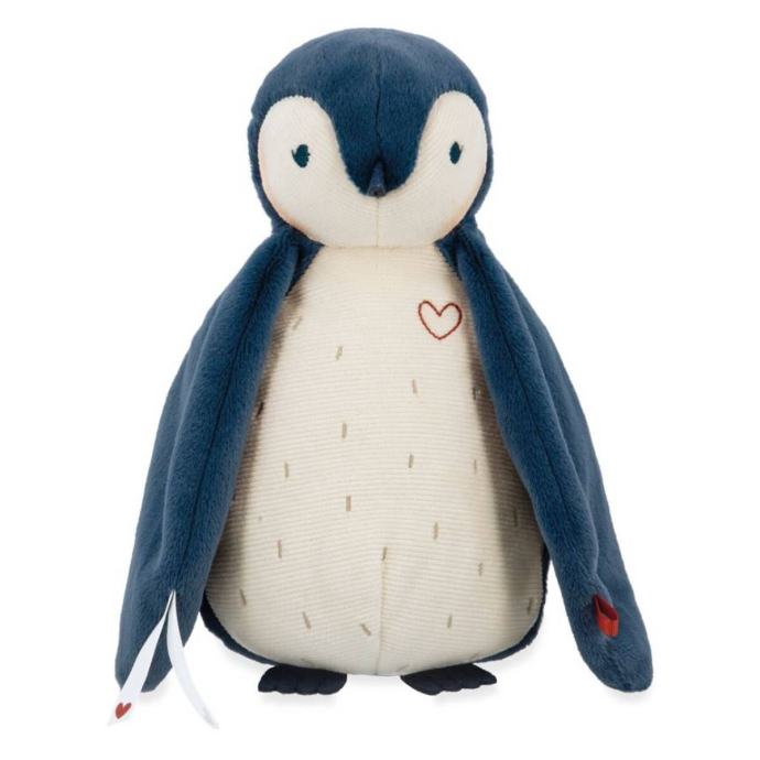 Zaljubite se u ovog preslatkog pingvina s okruglim trbuščićem! Ova plišana igračka, prikladna za bebe od 0 mjeseci nadalje, idealna je za reprodukciju raznih umirujućih zvukova. Također možete snimiti vlastitu personaliziranu poruku kako biste u bilo kojem trenutku umirili svoju malu bebu.