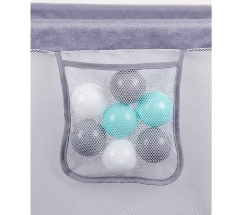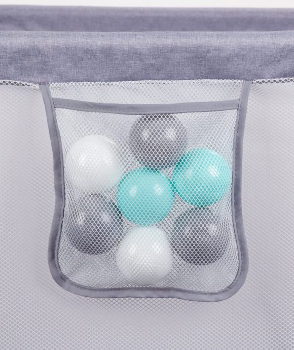 Korištena prozirna i ujednačena mrežica omogućuje djetetu da promatra okolinu, osigurava odgovarajuću ventilaciju i osigurava da igračke smještene u ogradici ostanu unutra.