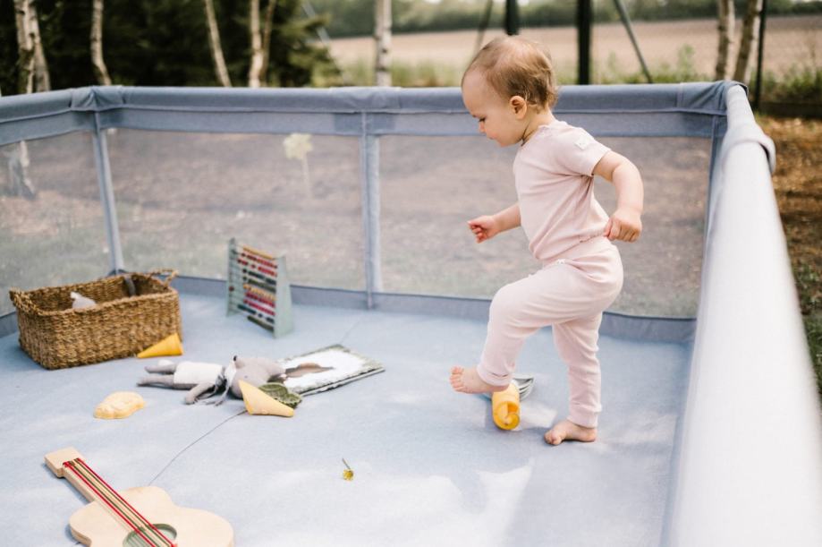Tkanina ogradice otporna na trganje i lako se čisti omogućuje korištenje proizvoda ljeti na otvorenom. Zajedničko druženje u vrtu uz jamstvo sigurne zabave za dijete i malo opuštanja za roditelje bit će pravi užitak.
