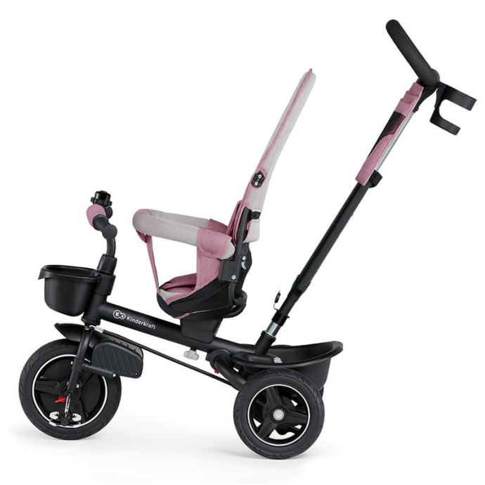 – verziju s zaštitnom ogradom i sigurnosnim pojasom uklonjenim za stariju djecu (roditelj i dalje može imati kontrolu pomoću ručke),