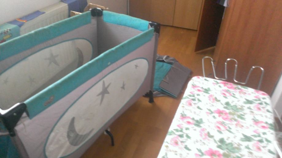 Krevetić sa madracem, posteljina,, putni krevetić, hranilica, prostirka za presvlačenje, sjedalica za auto do 1 g, nosiljka, kadica za kupanje, sve komplet vrlo povoljno za 1600kn.