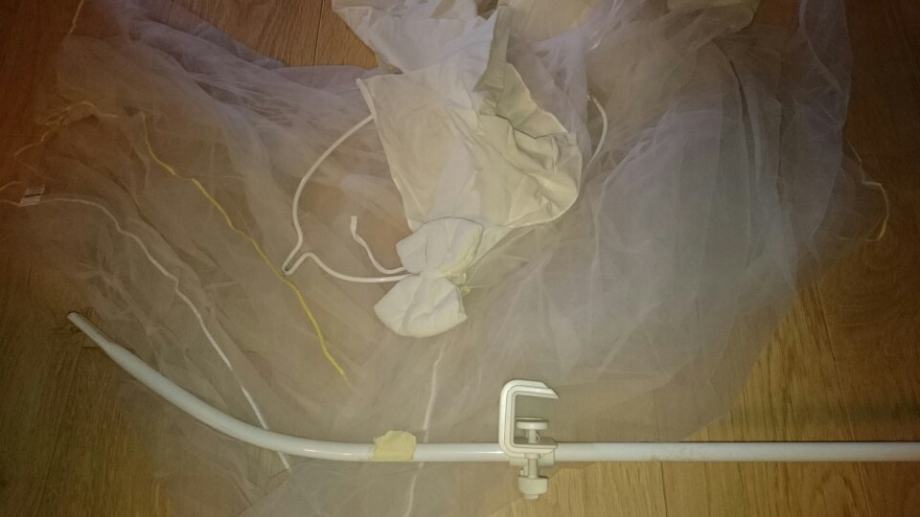 Bijelo-žuti baldahin s držačem, korišten par dana