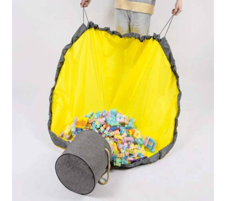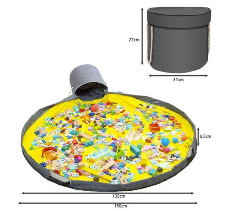 2 u 1 – proizvod ispunjava dvije funkcije. Ovo je briljantno rješenje za spremanje i brzo pospremanje kocki i igračaka . Podloga se također koristi za igru. Velik je, promjera 135 cm. To znatno olakšava izlivanje i skupljanje igračaka. Dodatno, prostirka ima ušivenu špagu sa čepom, koja se povlačenjem pretvara u vrećicu.