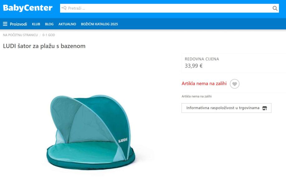 Prodajem potpuno novi i nekorišteni LUDI šator za plažu s bazenom za djecu i bebe.