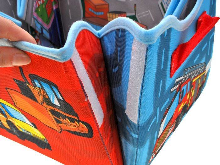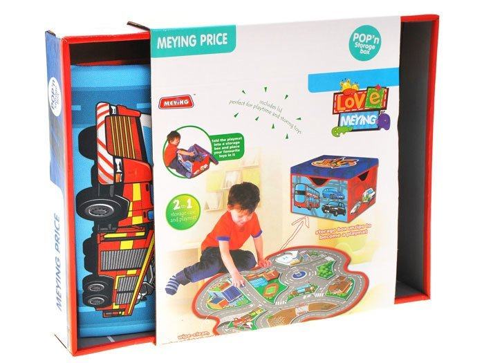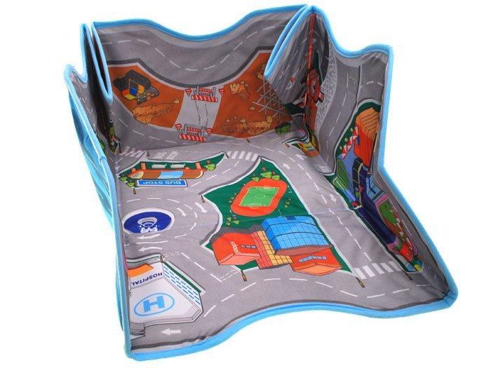 Kutija 2u1 nije ništa drugo nego prostirka s ulice za igru. Mata s ulice ima ulice, kružne tokove, cestu na kojoj dijete može voziti vlastite autiće, ali ponekad im je teško zadržati ih na jednom mjestu, tako da je kutija s krutim stijenkama imala sjajan pregled u više od jedne sobe, dječački.