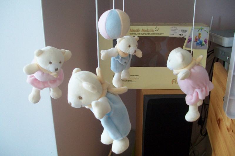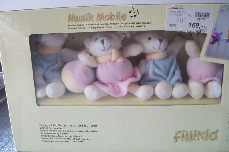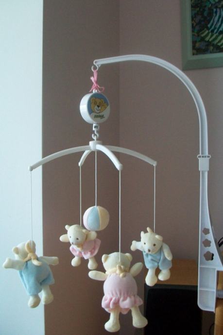 Muzički mobil s mogućnošću montiranja na kinderbet ili putni krevetić. Ugodna melodija i boje. Praktično nekorišteno. Kupljeno u Kiki za 169 kn. U kutiji.