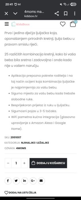 Prodajem vrlo malo korištenu o kao novu njihalica za bebe