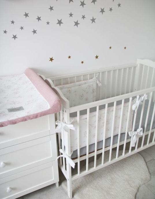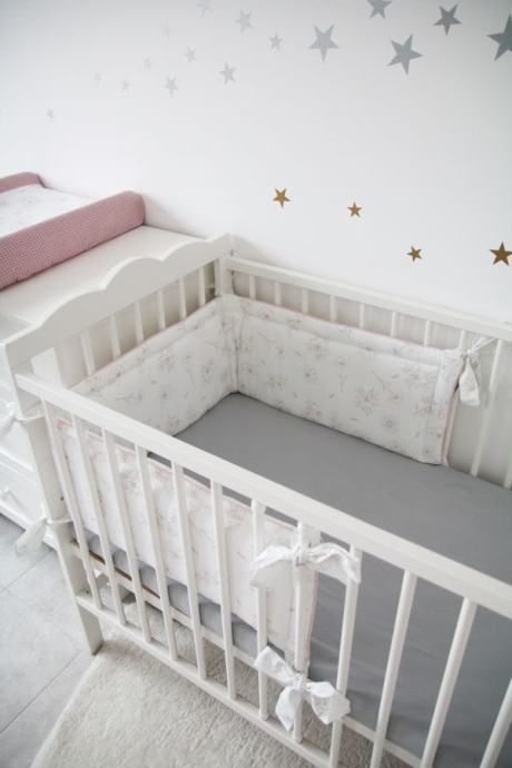 Ogradica je mekana zaštita od tvrdih dijelova dječjeg kreveta. Također stvara ugodnu atmosferu, savršenu za mirno čuvanje djece. Izrađena od pamučne tkanine s hipoalergenim punjenjem iznutra. Izvrsna nadopuna ostalim dodacima za spavanje - posteljinama, pokrivačima i jastucima. Perljivo u perilici.