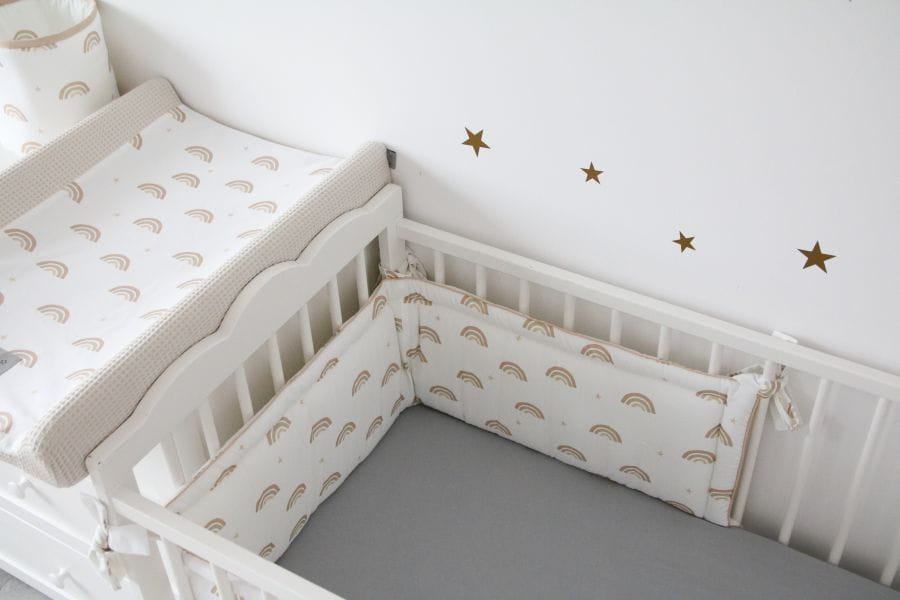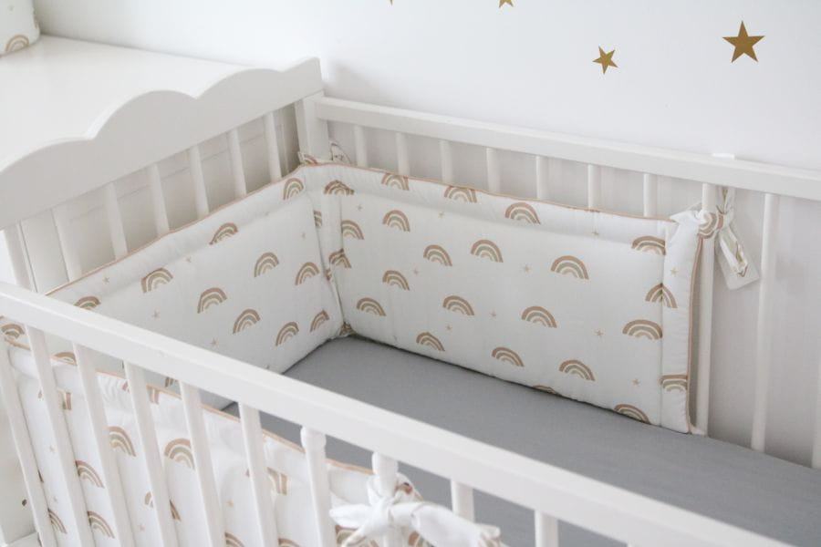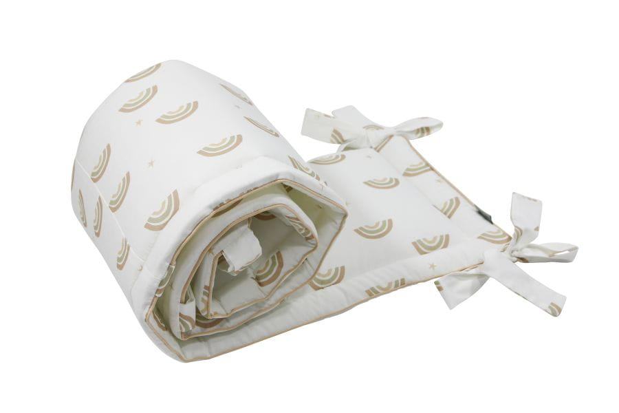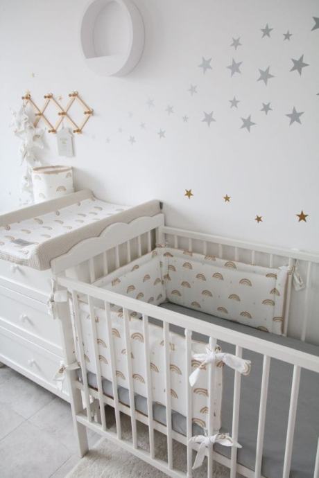 Ogradica je mekana zaštita od tvrdih dijelova dječjeg kreveta. Također stvara ugodnu atmosferu, savršenu za mirno čuvanje djece. Izrađena od pamučne tkanine s hipoalergenim punjenjem iznutra. Izvrsna nadopuna ostalim dodacima za spavanje - posteljinama, pokrivačima i jastucima. Perljivo u perilici.