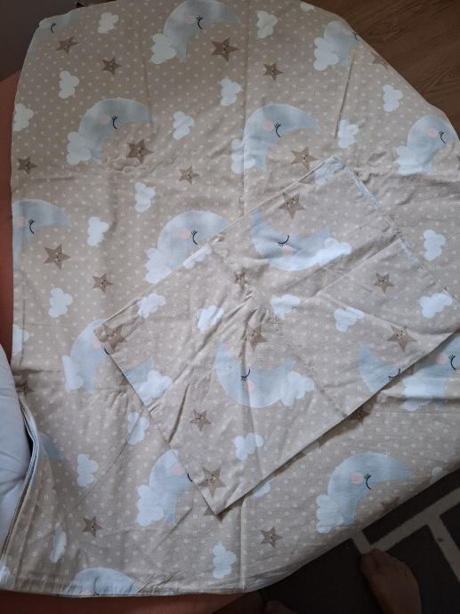 Ogradica u 3 dijela (dimenzije na slici) i posteljina: navlaka za poplun 120*80 i mala jastučnica 50*30.