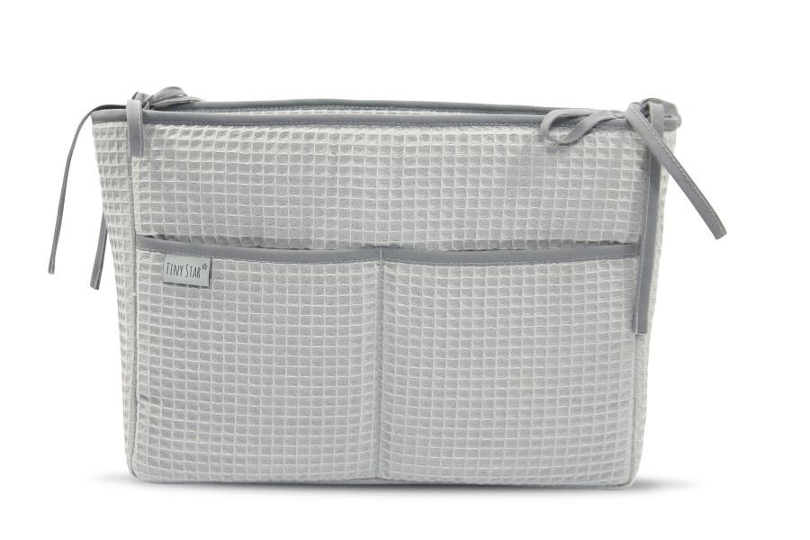 Praktičan organizator uz krevet. U njega se mogu smjestiti uvijek potrebni dječji dodaci: najomiljenija igračka za žvakanje, duda ili pelena. Ima 1 veliki džep i 2 manja.