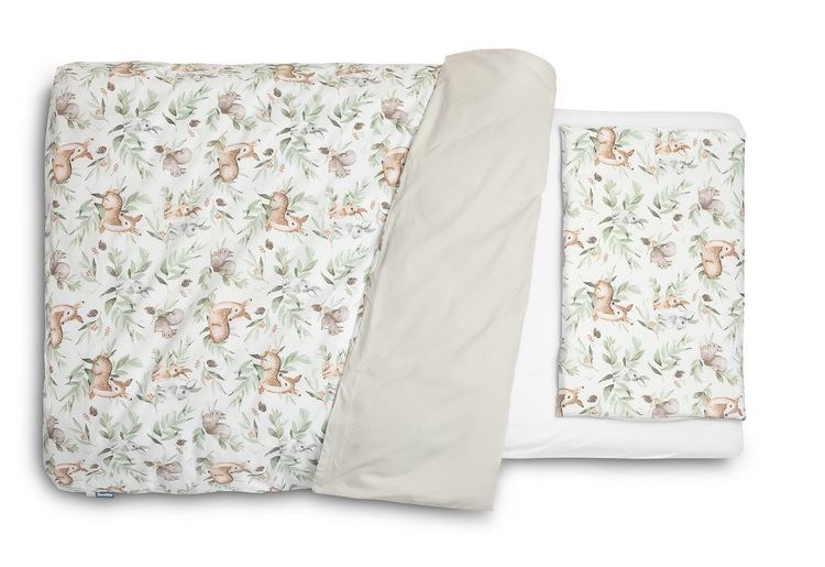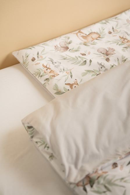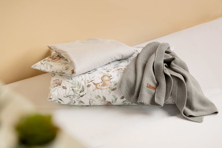 Posteljina od 2 elementa izrađena je od ugodnog na dodir, izdržljivog i 100% pamuka muslina. Kombinacije boja savršeno će pristajati svakoj dječjoj sobi. Set uključuje navlaku za poplun dimenzija 100x135cm i jastučnicu 40x60cm. Navlaka za poplun se kopča patentnim zatvaračem, dok se jastuk zatvara na preklop.