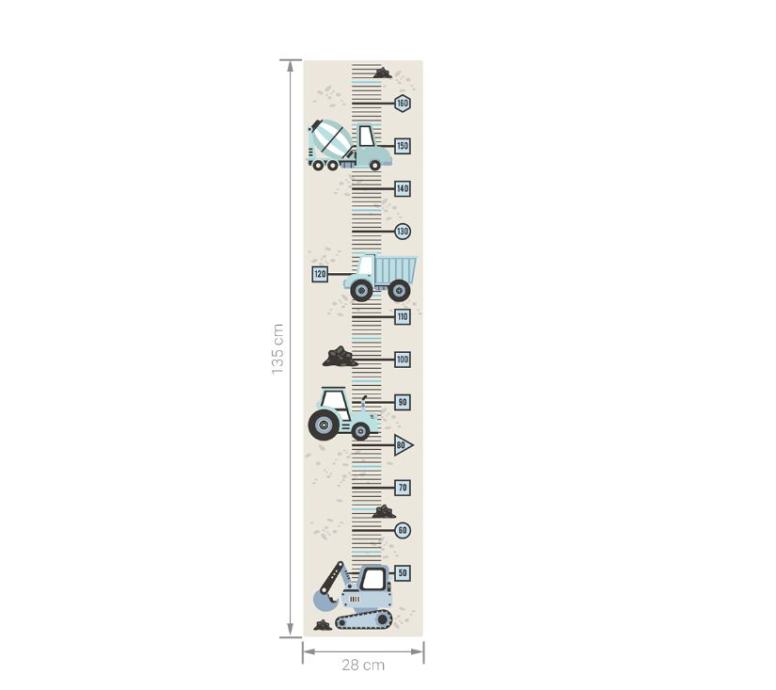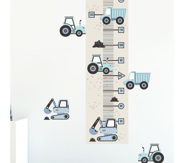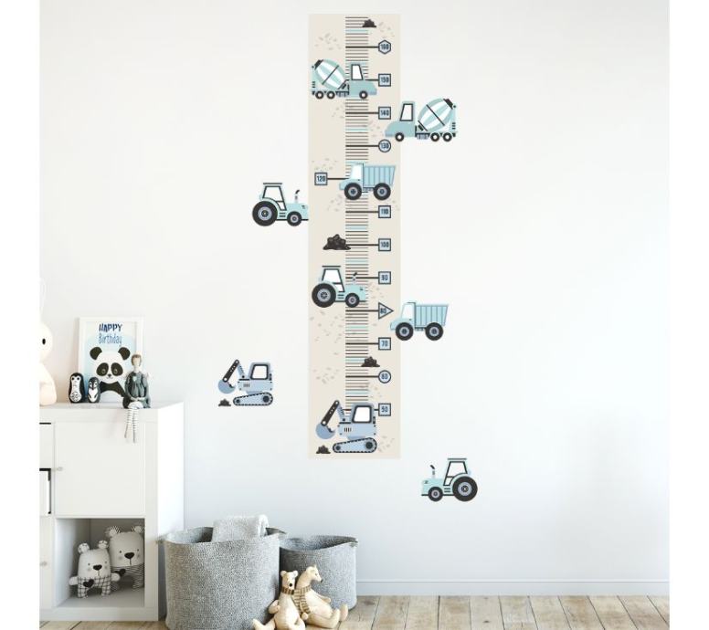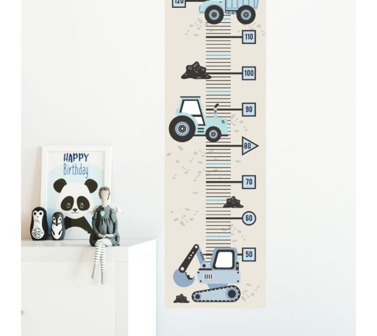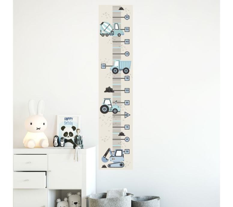 Označavanje visine djece u svakoj sljedećoj fazi njihova života tradicija je koja se njeguje generacijama. Nudimo jedinstvene mjere visine u obliku naljepnica, koje možete zalijepiti bilo gdje i zabilježiti svaki sljedeći centimetar visine vašeg djeteta. Mjere su dizajnirane kako bi savršeno odgovarale drugim proizvodima dostupnima u našoj trgovini. Odabirom visinskih građevinskih vozila i dodavanjem ostalih zidnih naljepnica u svoju košaricu stvorit ćete jedinstvenu sobu za svoje dijete.