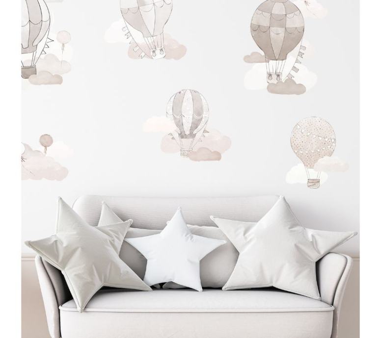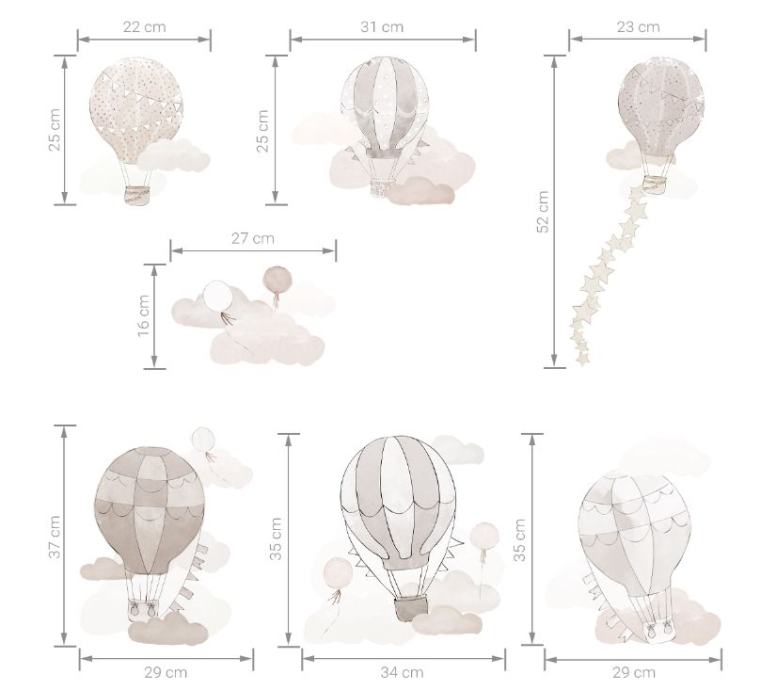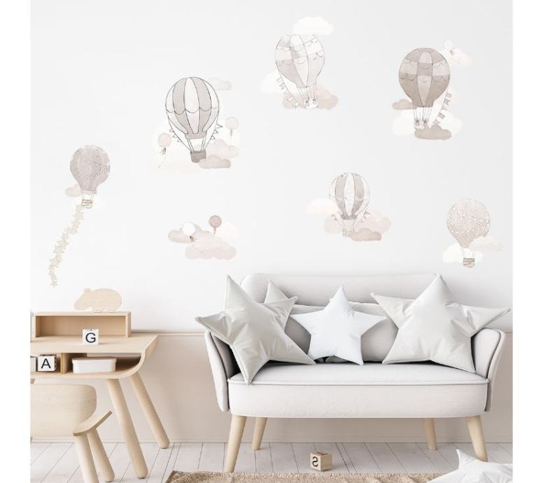 Svijet vašeg djeteta nikada nije bio tako čaroban kao sada, kada je pun naših letećih balona. Izrađene su s velikom pažnjom na detalje, a svaki komad je savršen. Djeca neće samo dobro spavati u njihovom društvu, već će se i dobro zabaviti pronalazeći šarene vjenčiće, balone i oblake na zidu. Svaki balon se izrezuje zasebno i može se postaviti na zid prema vlastitom nahođenju.