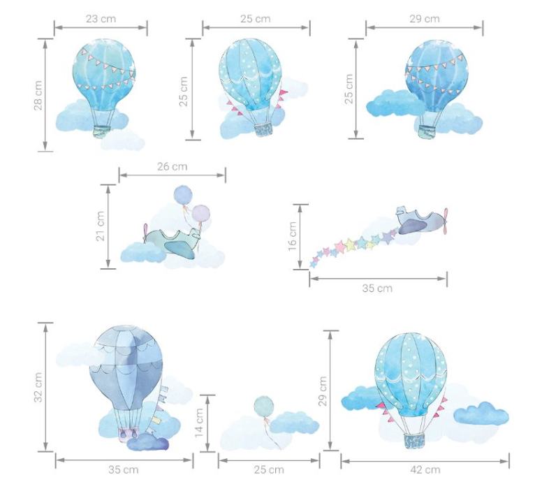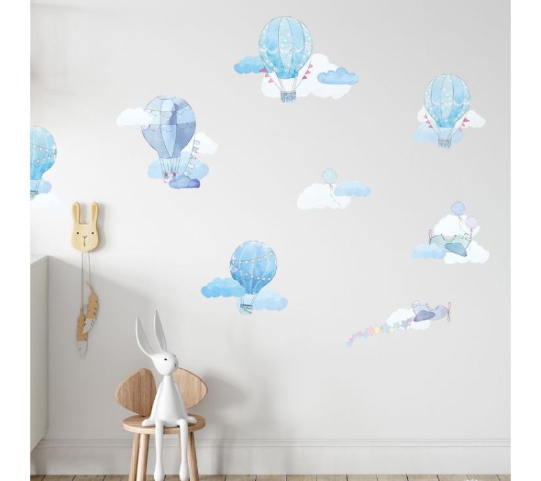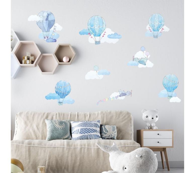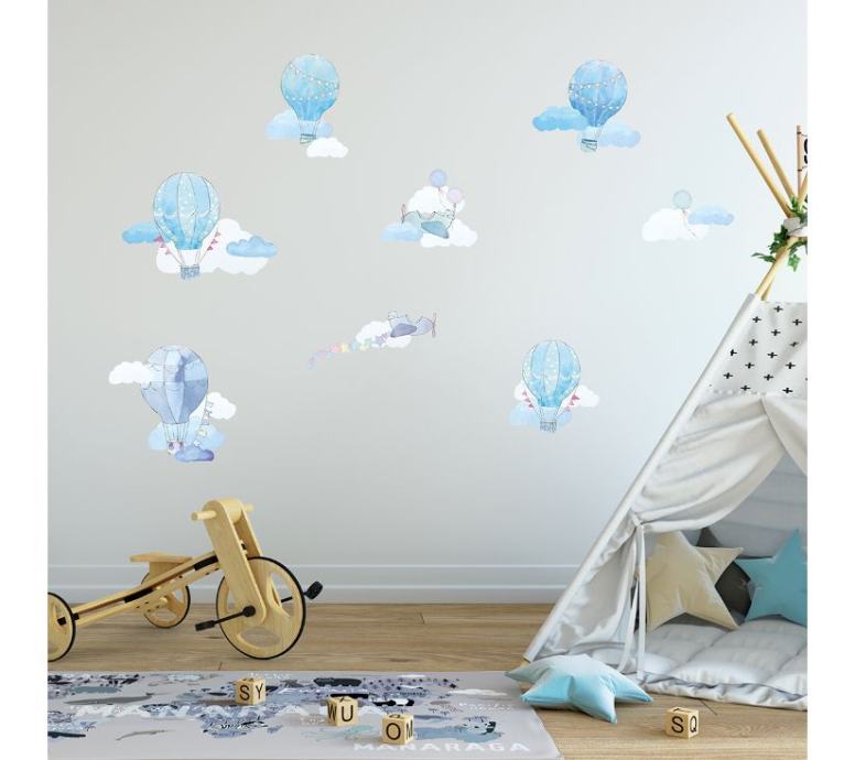Svijet vašeg djeteta nikada nije bio tako čaroban kao sada, kada je pun naših letećih balona. Izrađene su s velikom pažnjom na detalje, a svaki komad je savršen. Djeca neće samo dobro spavati u njihovom društvu, već će se i dobro zabaviti pronalazeći šarene vjenčiće, balone i oblake na zidu. Svaki balon se izrezuje zasebno i može se postaviti na zid prema vlastitom nahođenju.