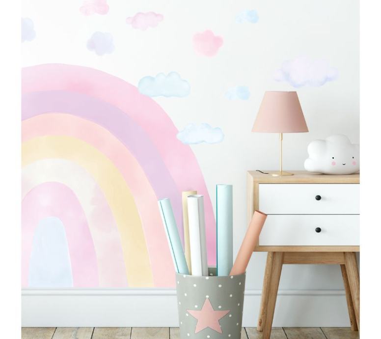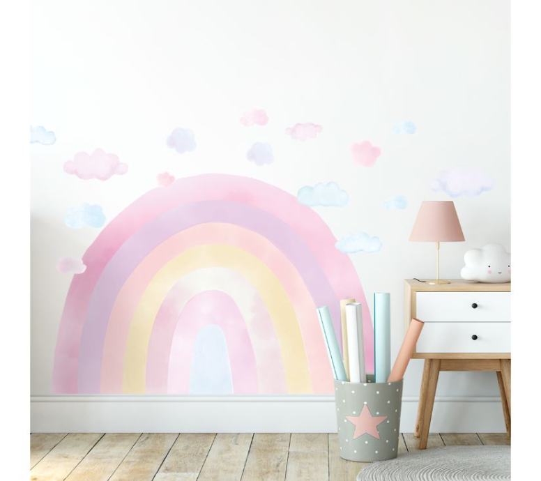 Duga u akvarelu izgledat će fantastično u svakoj dječjoj sobi. Nježne, zaista svijetle boje daju zidu poseban karakter. Rainbow naljepnice, zahvaljujući velikoj površini, idealne su za lijepljenje iza kreveta, ili u dječjem kutku.