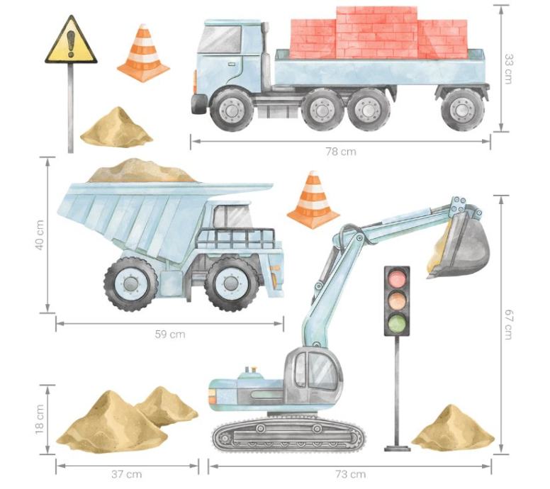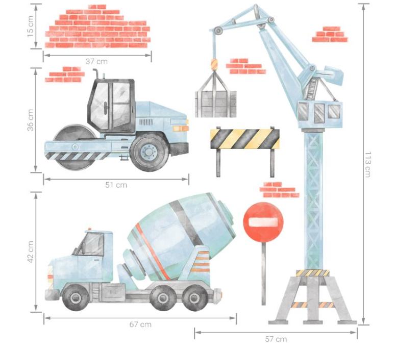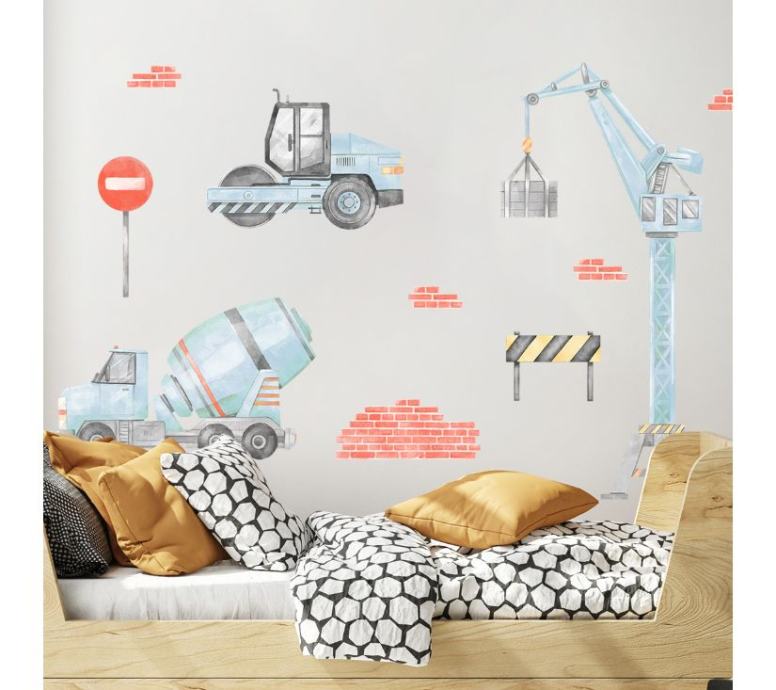 Kolekcija zidnih naljepnica za gradilište stvorena je za istinske ljubitelje građevinskih vozila. Zidne naljepnice iz ove serije su realistična vozila ravno s gradilišta. Cijela serija dizajnirana je tako da se savršeno međusobno usklađuje i stvara koherentnu kompoziciju.
