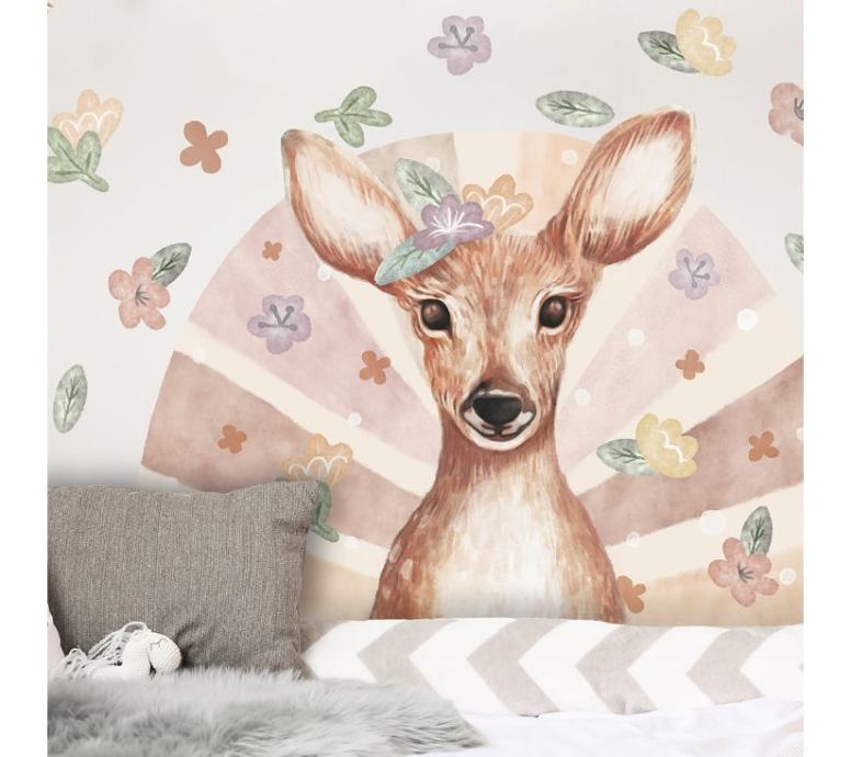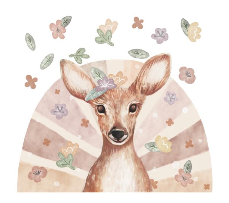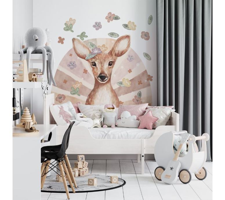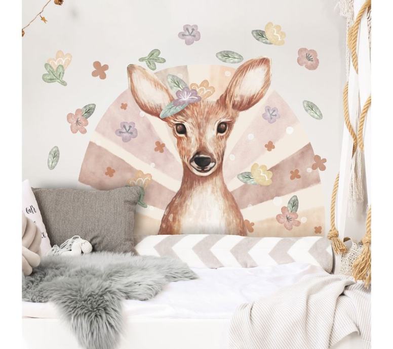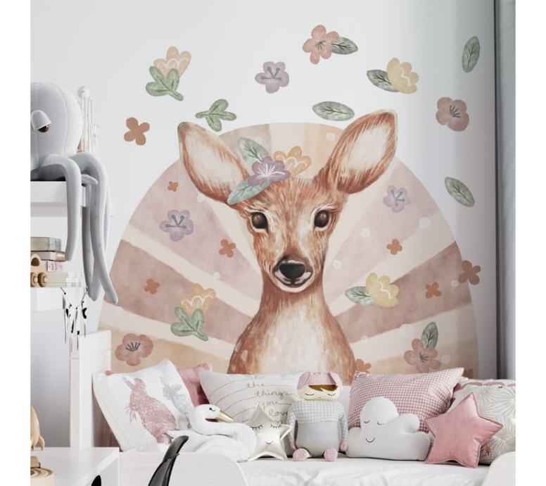 Naljepnice iz ove kolekcije oduševljavaju detaljima i harmonijom boja čija je paleta prilagođena najnovijim trendovima u uređenju interijera. Zahvaljujući tome savršeno će se uklopiti u svaki dječji prostor. Naljepnica srne jednostavan je i brz način za stvaranje divne metamorfoze dječjeg prostora.