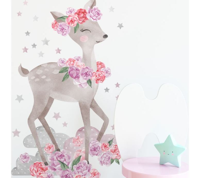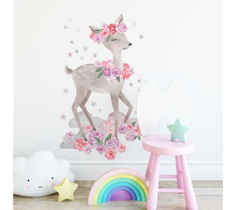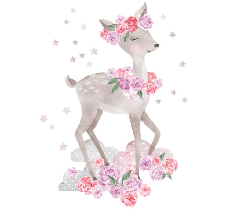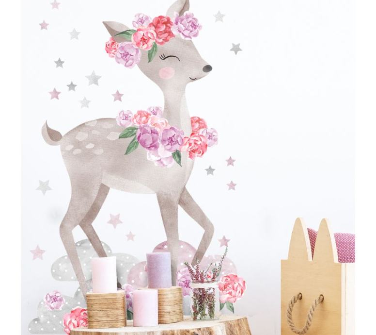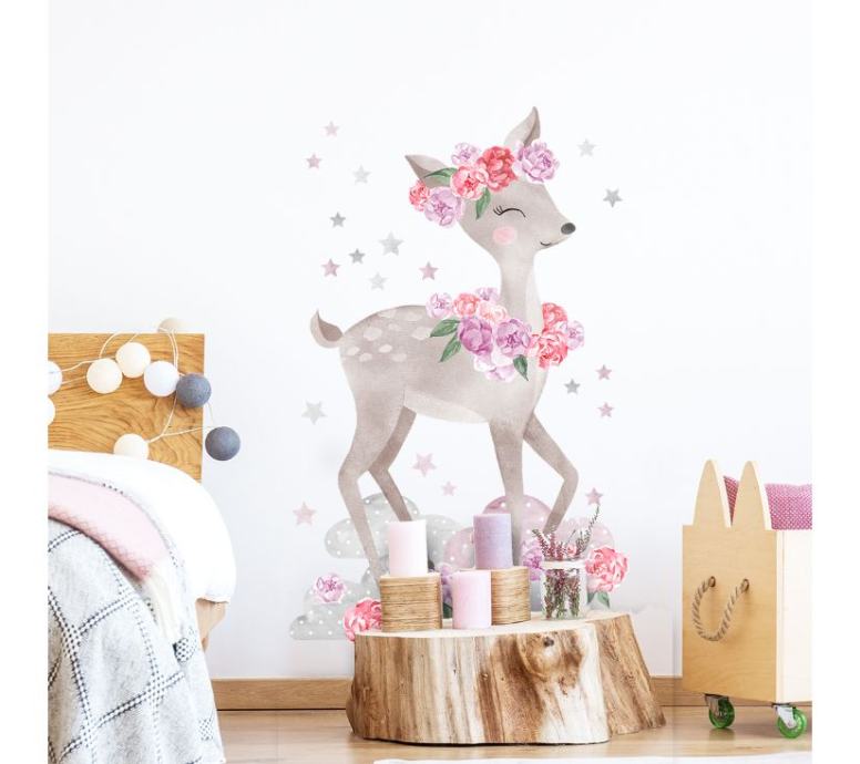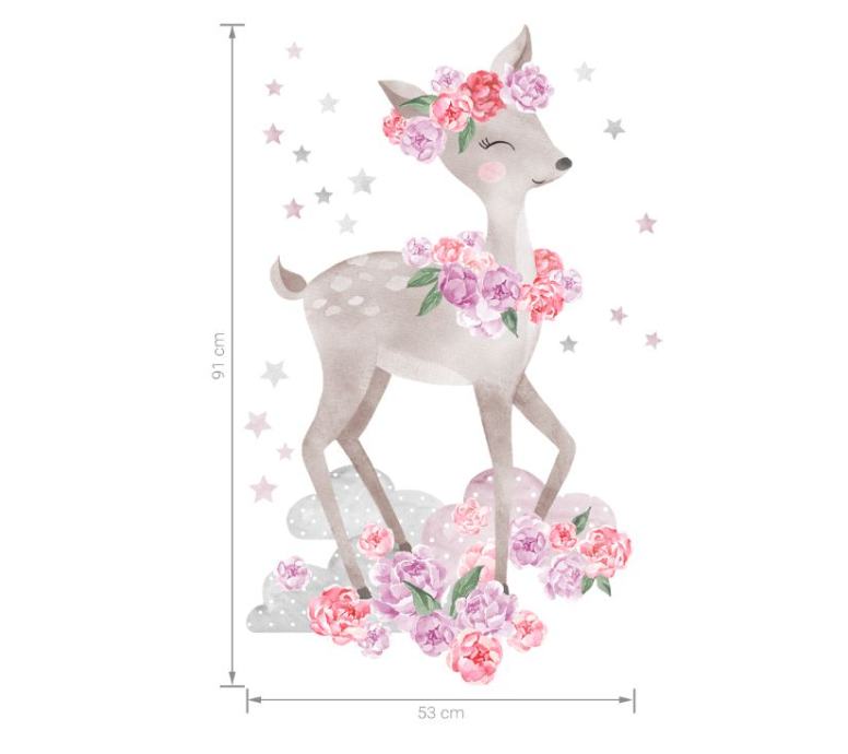 Ovaj set uključuje: srnu s oblacima (53x91 cm) i dodatne elemente (zvjezdice).