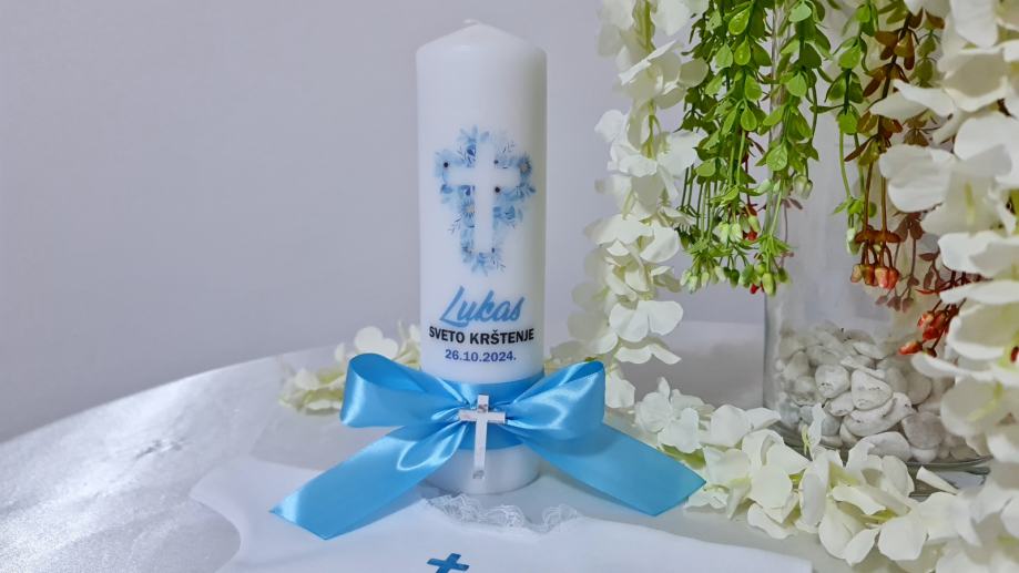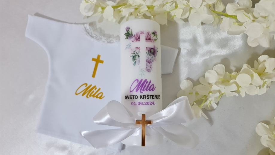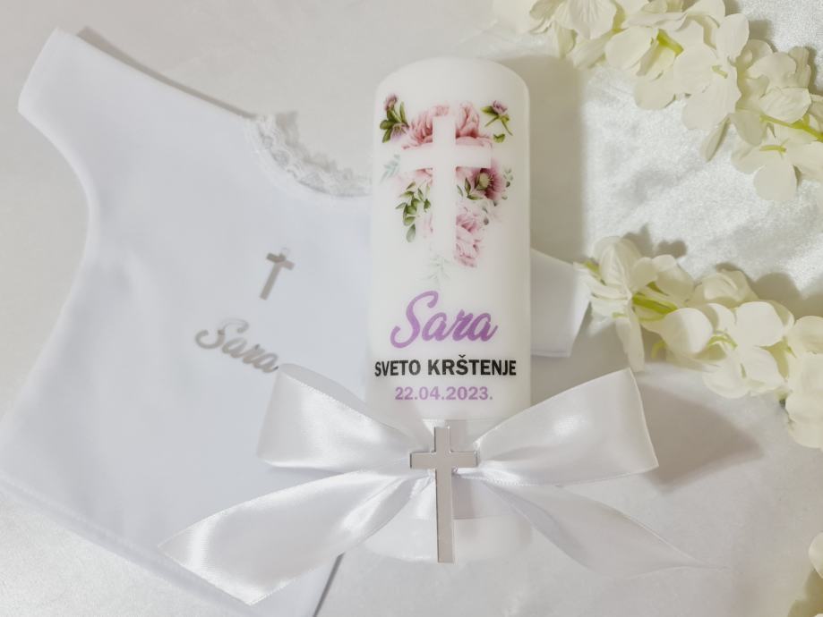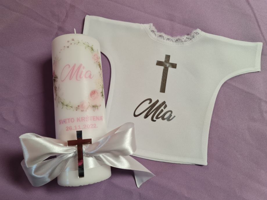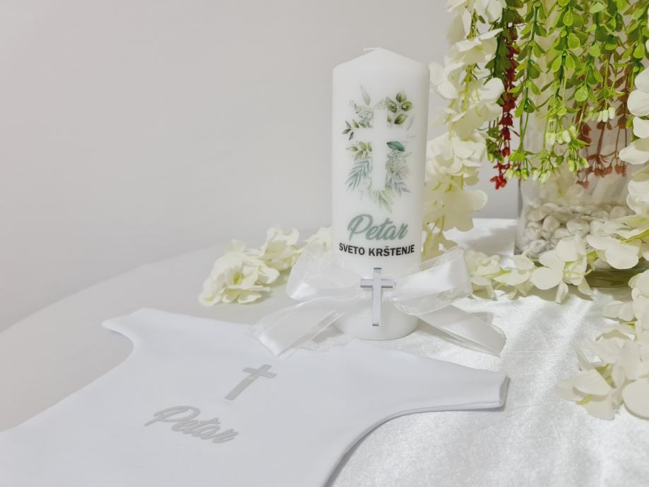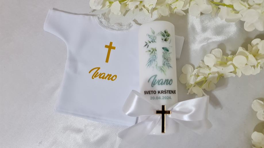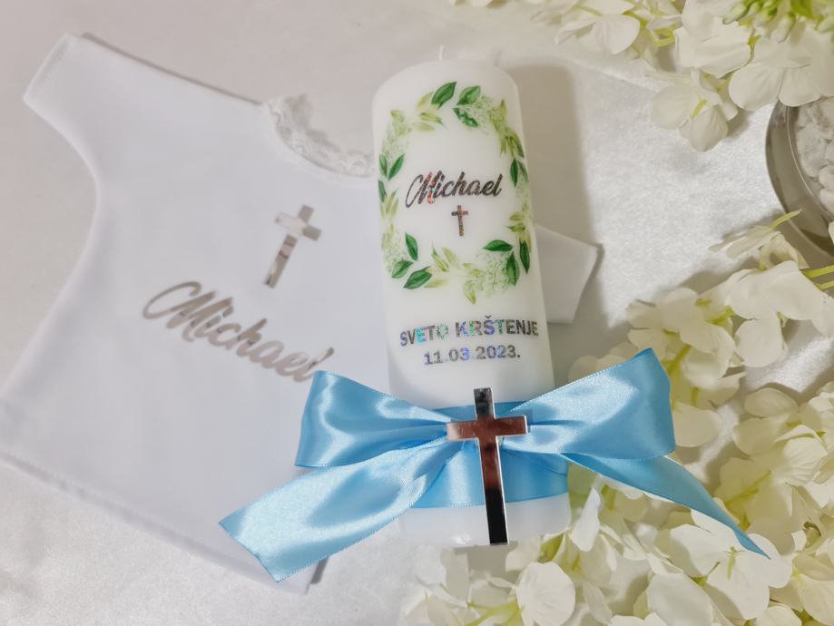 Krsni set koji se sastoji od svijeće i krsne košulje