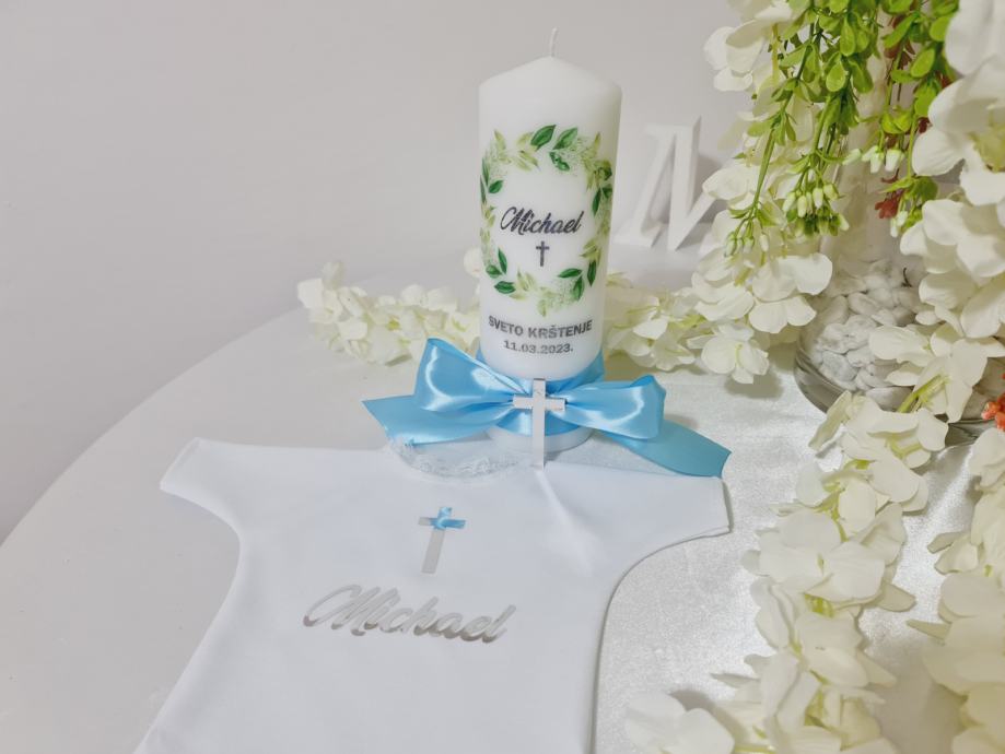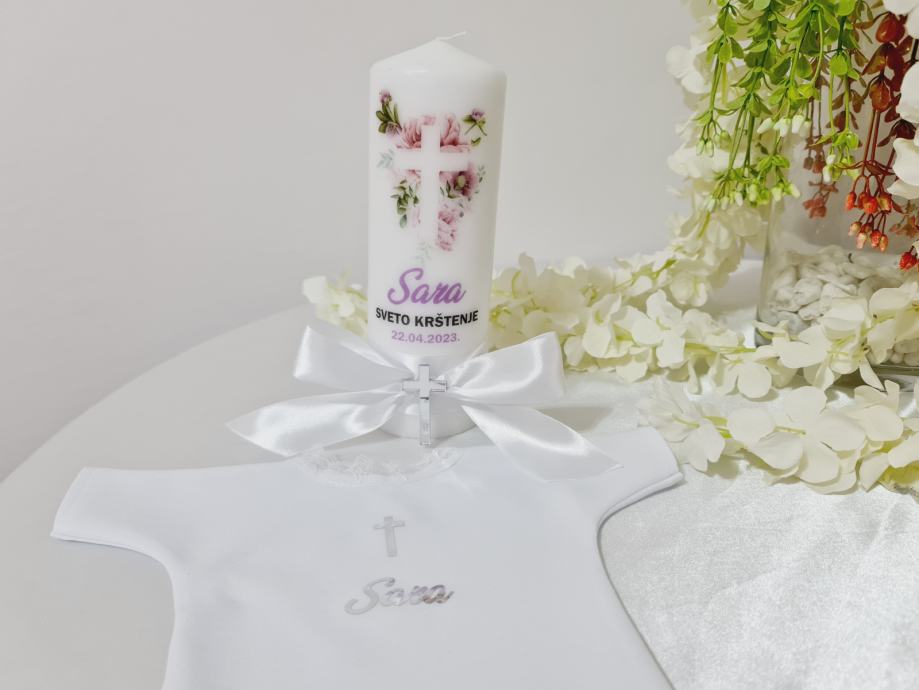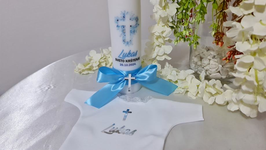 Personalizirana svijeća i košuljica za krštenje, krsni set