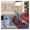 Baby monitor za pouzdanu vezu s vašim djetetom, domet 330 m. Dvosmjerna komunikacija, DECT tehnologija za rad bez smetnji s čistim zvukom. LED indikatori za zvuk. Funkcija Smart Eco za učinkovitu upotrebu energije te senzor za temperaturu. Baby alarm ima noćno svjetlo i uspavanke koje smiruju dijete.