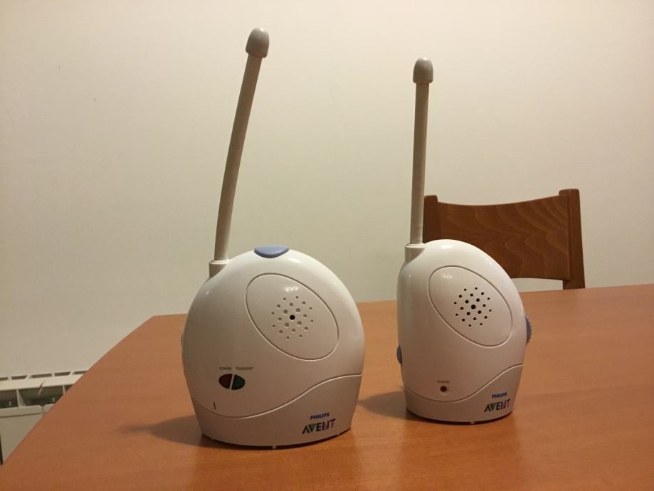 Analogni babyphone koji radi na AA baterije ili na struju (napomena: adaptere nemamo). Babyphone je korišten godinama, potpuno je ispravan, osim što su se potrgali kablovi na adapterima, pa smo ih bacili.