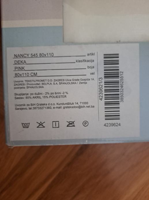 Dječja dekica visoke kvalitete. Dimenzije: 80x110 cm. Sastav: 85% akrilna vlakna, 15% poliesterska. Proizvedeno u Španjolskoj.