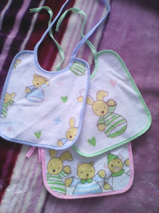 - svaki sa slikom medvjedića ili zečića i obrubima u svijetlim nježnim bojama (plava, zelena, roza)