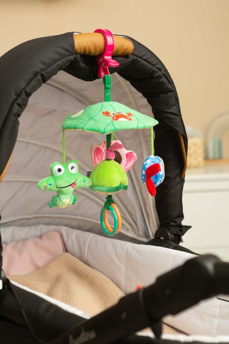 Praktični i laki nosač omogućuje jednostavno pričvršćivanje na kolica, autosjedalicu ili krevetić, tako da igračka uvijek ostaje nadohvat djetetovih ruku. Čvrsta montaža osigurava stabilnost, a izdržljivi materijali jamče duge sate zabave – kod kuće, u šetnji i na putovanju!