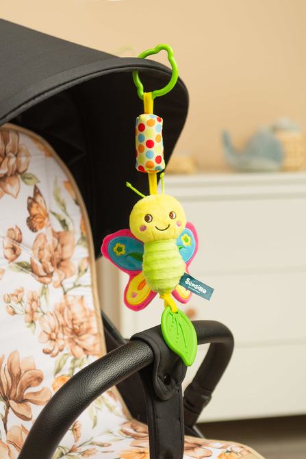 Zahvaljujući praktičnoj kopči, možete ga jednostavno pričvrstiti na kolica, autosjedalicu ili krevetić, pružajući svom djetetu zabavu i osjećaj sigurnosti u svakoj situaciji.