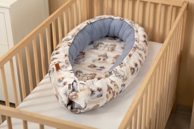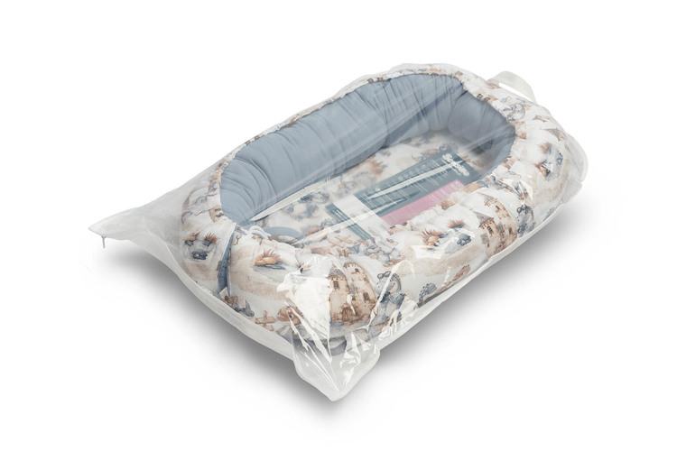 Gnijezdo za bebe je dizajnirano za bebe od rođenja do otprilike 6 mjeseci starosti. Čahura obavija bebu i ograničava joj prostor, zahvaljujući čemu se beba osjeća sigurno, kao u majčinom trbuhu. Može se koristiti na više načina: u roditeljskom krevetu, na kauču, u krevetiću i tijekom putovanja. Visoki zidovi sprječavaju da se dijete kotrlja. Proizvod je izrađen od pamuka i muslina punjen 100% silikonskim kuglicama. PAŽNJA! Gnijezdo za bebe nije namijenjeno za nošenje ili podizanje djeteta!