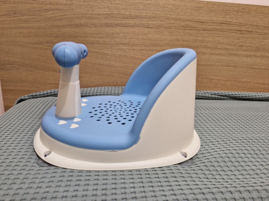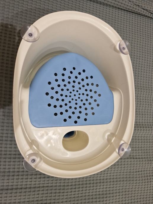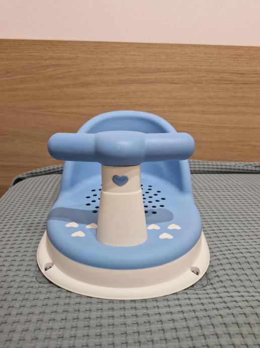 Prodajem sjedalicu za kupanje bebe u kadi. Dno je rupičasto pa stoga voda neometano prolazi, a s donje strane sadrži i vakum čepiće koji omogućavaju stabilan položaj u kadi.