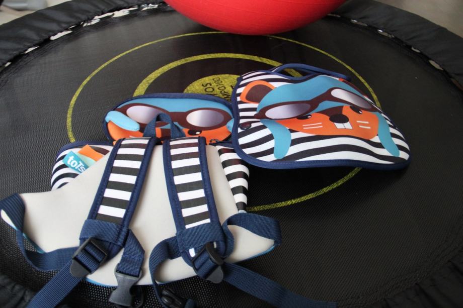Tots ruksak za najmanje posebno je udobno dizajniran. Izrađen od neoprena koji je jednostavan za čišćenje. Ima mekane naramenice koje se prilagođavaju duljinom i traku za preko prsa za učvršćivanje. Ruksak ima dodatnu traku (koja se može skinuti), da malenog avanturistu držite blizu sebe. Također uključuje ubrus za hranjenje i vezicu koja svira za igranje (ne vidi se na slici).
