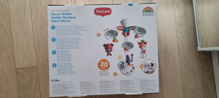 Jedinstven dizajn i inovativni mobilni pokreti za bebeCrne i bijele spirale za vizualnu stimulaciju20 minuta kontinuirane klasične glazbeUkrašena sa slatkim likovima