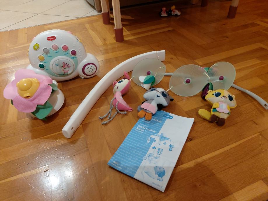 Poklanjam Tiny Love Soothe' n Groove Mobile vrtuljak za krevetić, glazbenu kutiju je naša curica koristila do 3. godine. Očuvano, samo jedno dijete je koristilo. Osobno preuzimanje Novi Zagreb zapad.