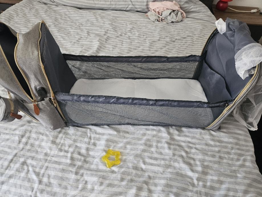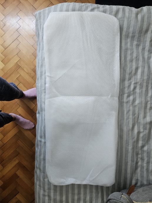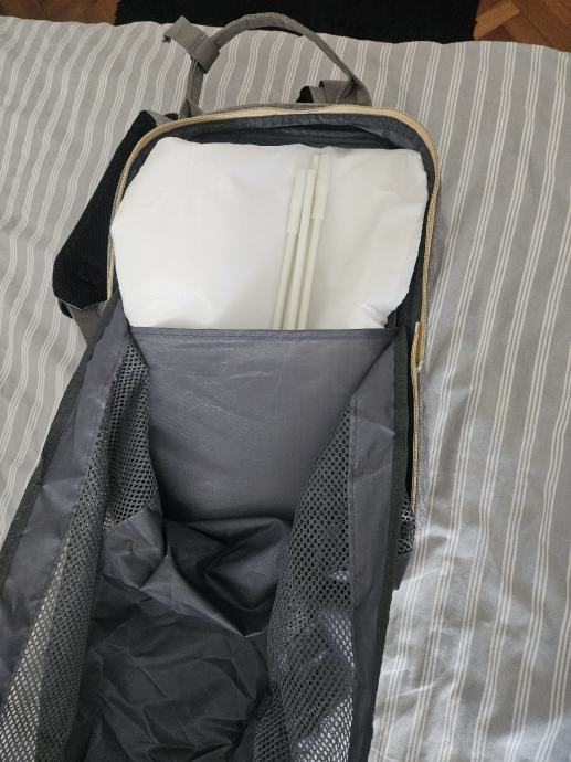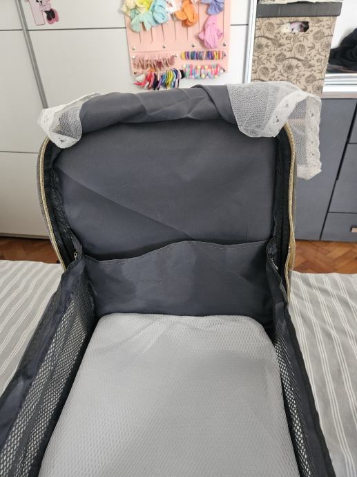 Vrlo lako se pretvara u putni krevetic sa mekanom podlogom za lezanje duzine 70 cm te zastitom od insekata