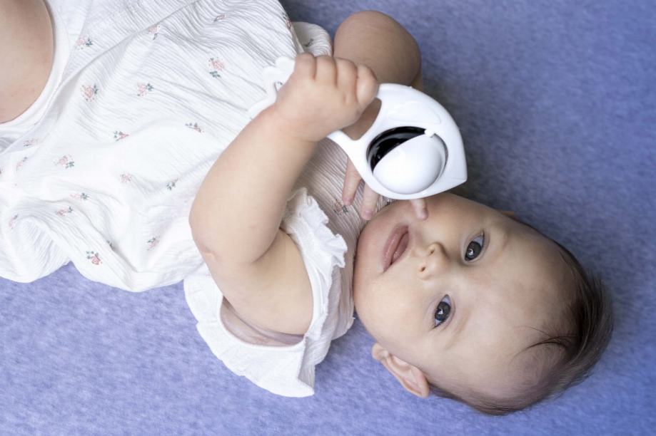 Prekrasna crno-bijela zvečka namijenjena najmlađoj djeci. Kombinacija boja savršeno stimulira osjetilo vida dojenčeta koje nije u stanju razlikovati boje.