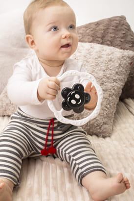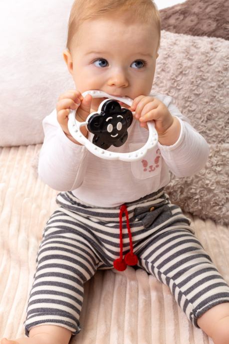 Prekrasna crno-bijela zvečka namijenjena najmlađoj djeci. Kombinacija boja savršeno stimulira osjetilo vida dojenčeta koje nije u stanju razlikovati boje.