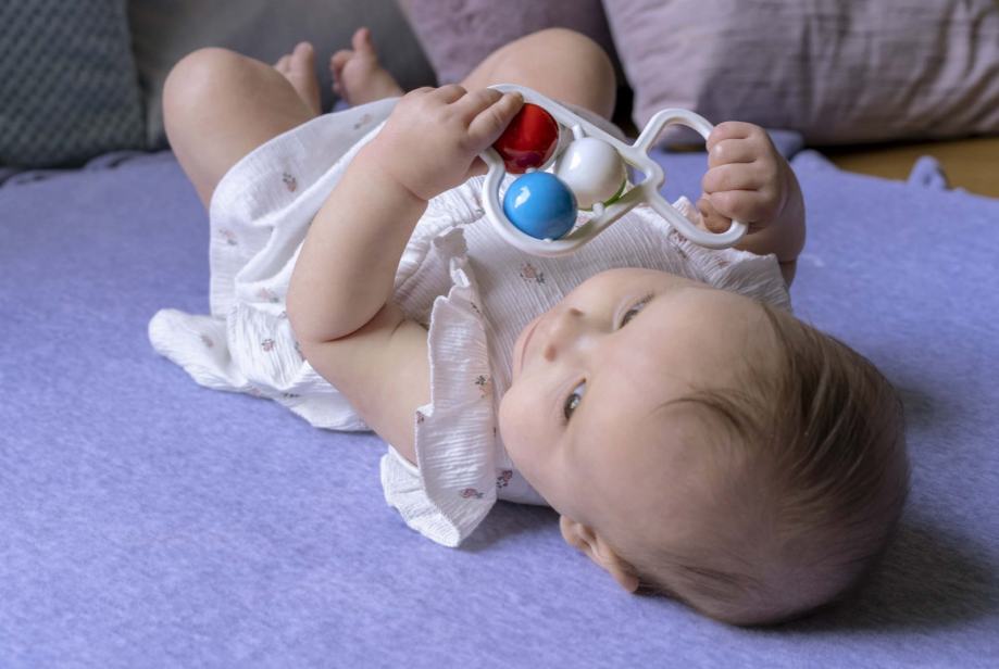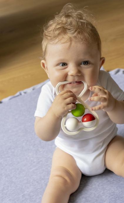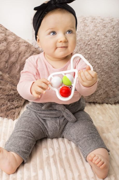 Prekrasna, klasična zvečka u obliku srca. Savršeno stimulira osjetilo sluha, vida i dodira vaše bebe.