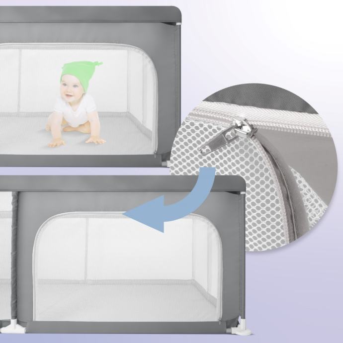 Prozračne mrežaste stijenke omogućuju roditeljima pun pogled na dijete, a istovremeno osiguravaju odličnu ventilaciju unutrašnjosti ogradice. Zahvaljujući tome, roditelji mogu biti sigurni da je njihova beba sigurna i sretna.
