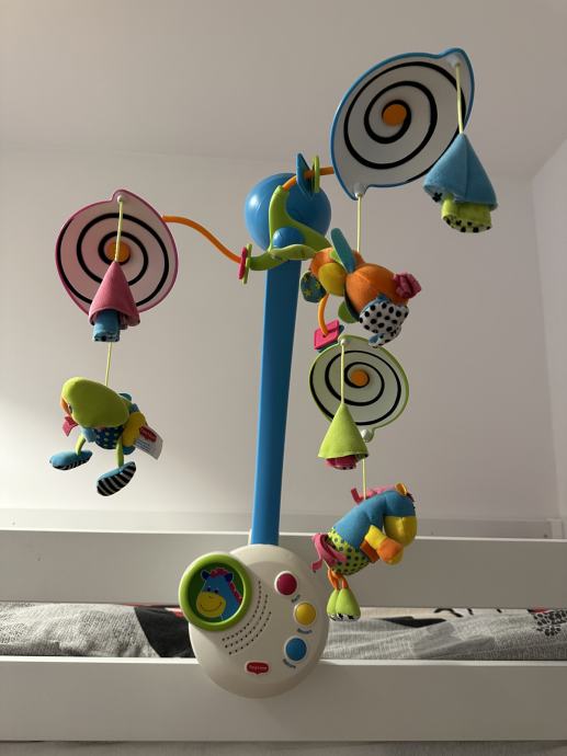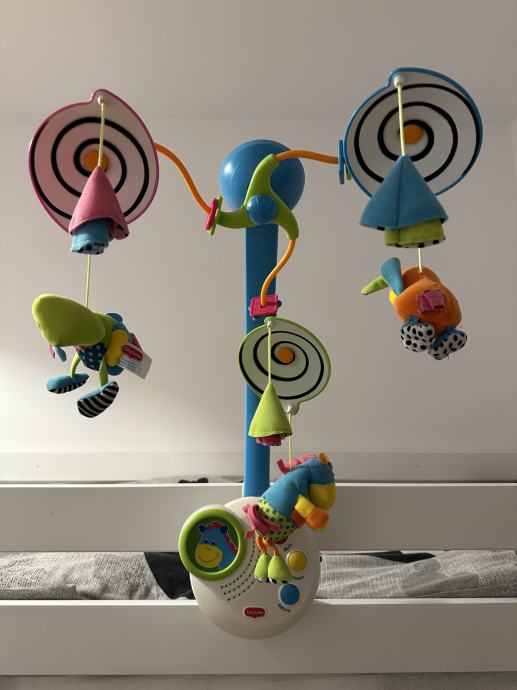 Prodaje se Tiny Love vrtuljak za dječji krevetić sa glazbenom kutijom koja je odvojiva i može se zasebno koristiti. Reproduciraju se tri različite skladbe sa mogućnošću reguliranja jačine zvuka i svjetlosnim efektom. U odličnom stanju, jako malo korišten. Dolazi u pakiranju sa originalnom kutijom.