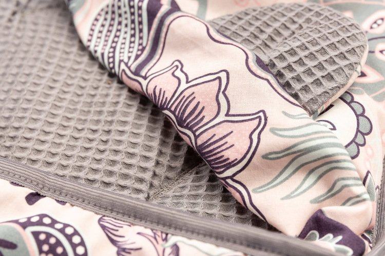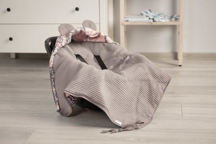 Pokrivač za povijanje s dječjim krevetićem od vafla dizajniran je za najmlađu djecu. Udoban je i stvarno praktičan tijekom putovanja. To je alternativa za toplu dječju odjeću. Zahvaljujući rupama za pojaseve s 3 točke stvarno je funkcionalan – nema potrebe za otkopčavanjem pojaseva da biste otkrili bebu u nosiljci. Pokrivač za povijanje ima podesivu kapuljaču s lijepim ušima. Izrađen je od 100% pamuka.