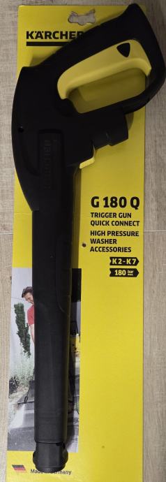 Kärcher visokotlačni pištolj G 180 Q Quick Connect koristan je rezervni dio za visokotlačne čistače klase od K2 do K7. Pištolj je 13 cm duži od uobičajene standardne verzije, čime se postiže veća udobnost pri radu. Sustav Quick Connect omogućava spajanje visokotlačnog crijeva bez upotrebe alata. Pištolj ima sigurnosnu zaštitu za djecu.