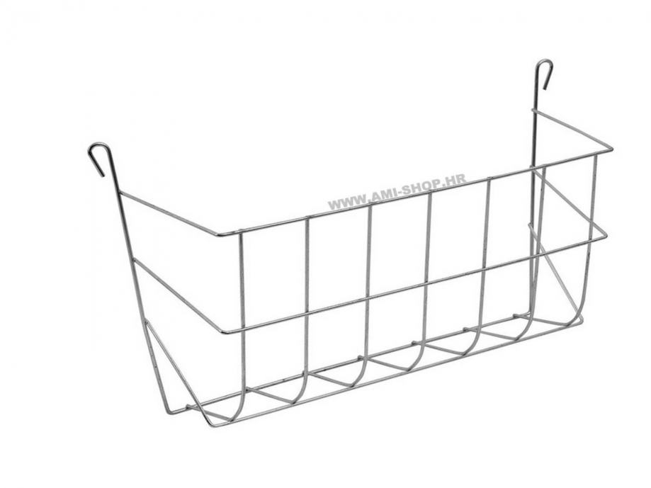 Jasle za sijeno imaju dva otvora za spajanje na zid , kavez , mrežu…. Ovaj proizvod je izrađen od pocinčane žice debljine 2,5 mm sA sjajnom površinom.