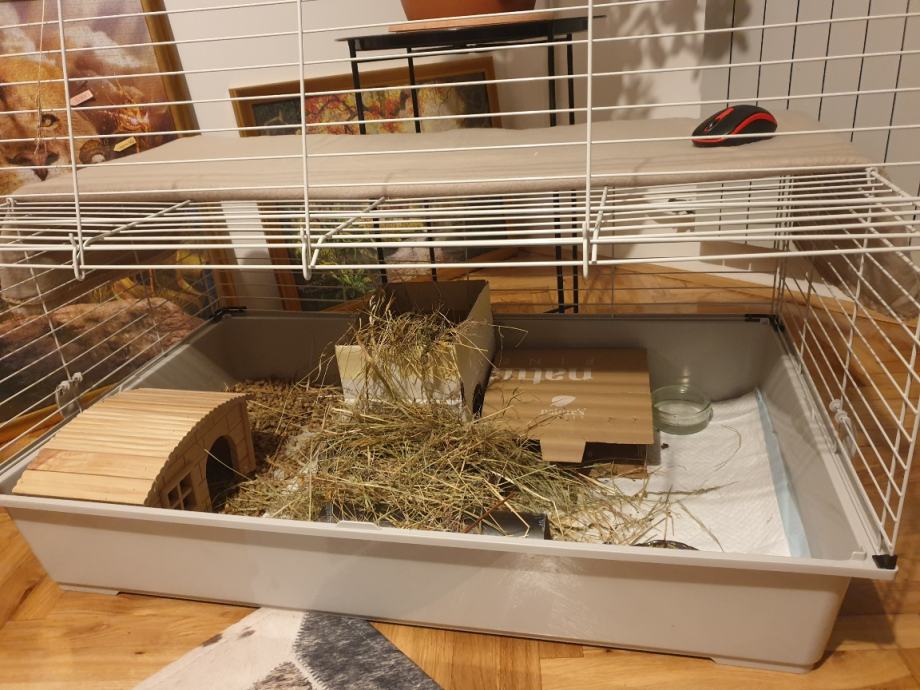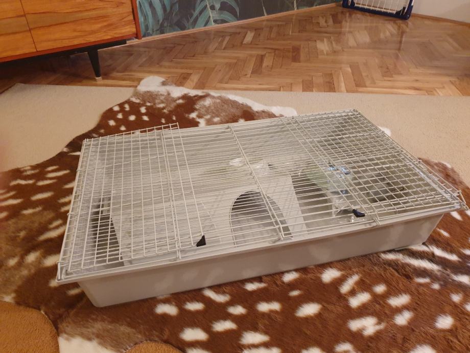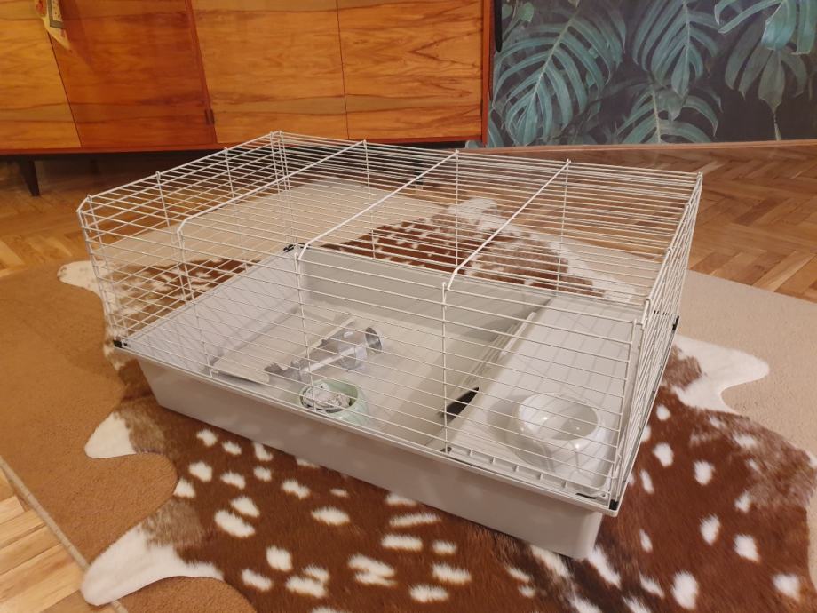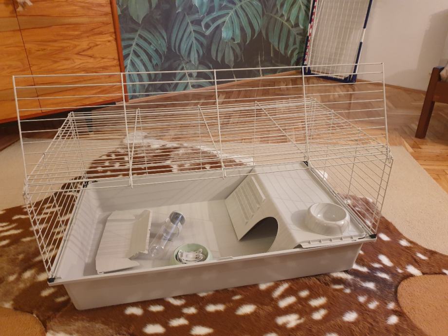Kavez za zamorčića ili kunića, vrlo kratko korišten u besprijekornom stanju. Duljina 100 cm. Oprema uz kavez (plastična kućica, nastavak za sijeno, bočica i zdjelica). Stanje kao na slikama.