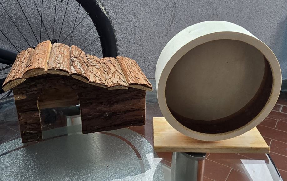 Kavez za hrcka na dva kata s pojilicom drvena kućica i kolo posuda za hranu, tunel za penjanje i jos dodataka