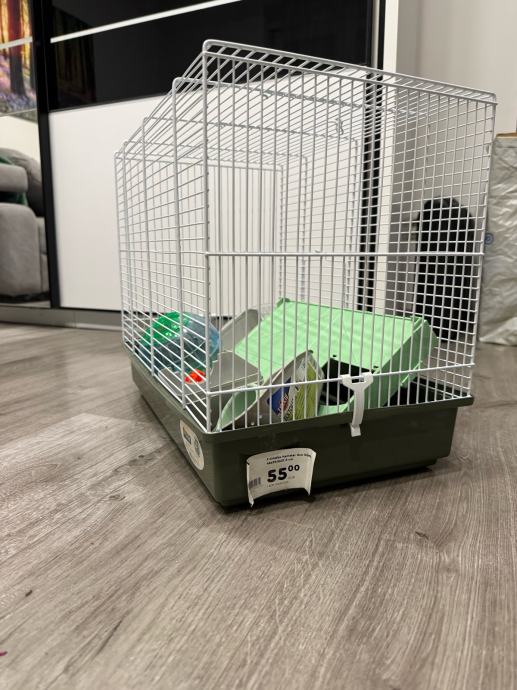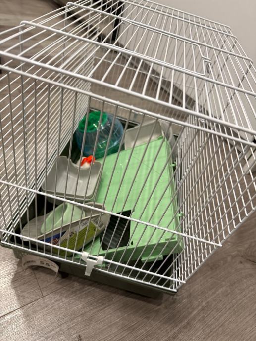Prodajem rabljeni kavez za hrčka. Kavez ima bijelu metalnu rešetku i tamnozelenu plastičnu bazu. U cijenu je uključena i dodatna oprema koja se vidi unutar kaveza – kotač za trčanje, zelena podloga te ostali pribor.