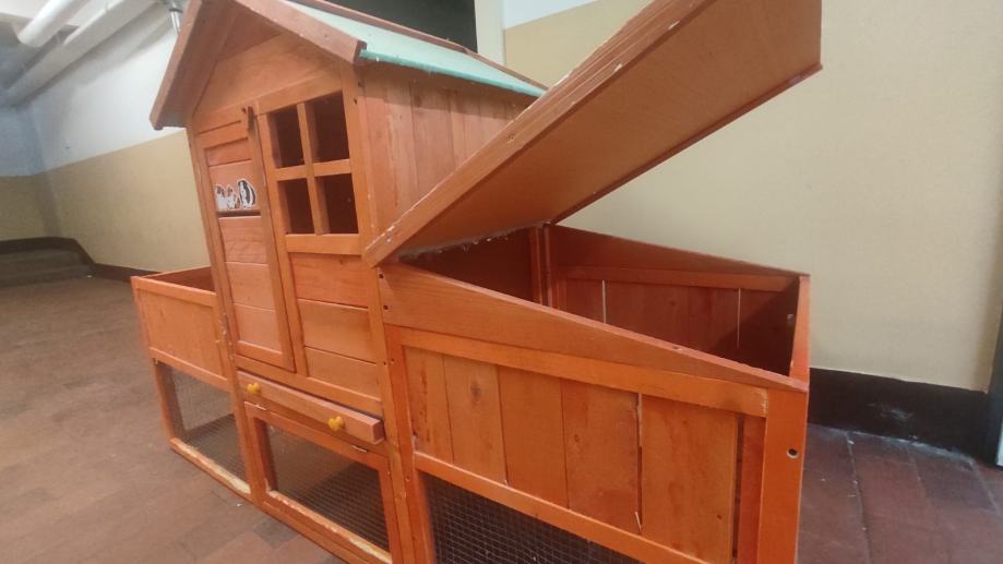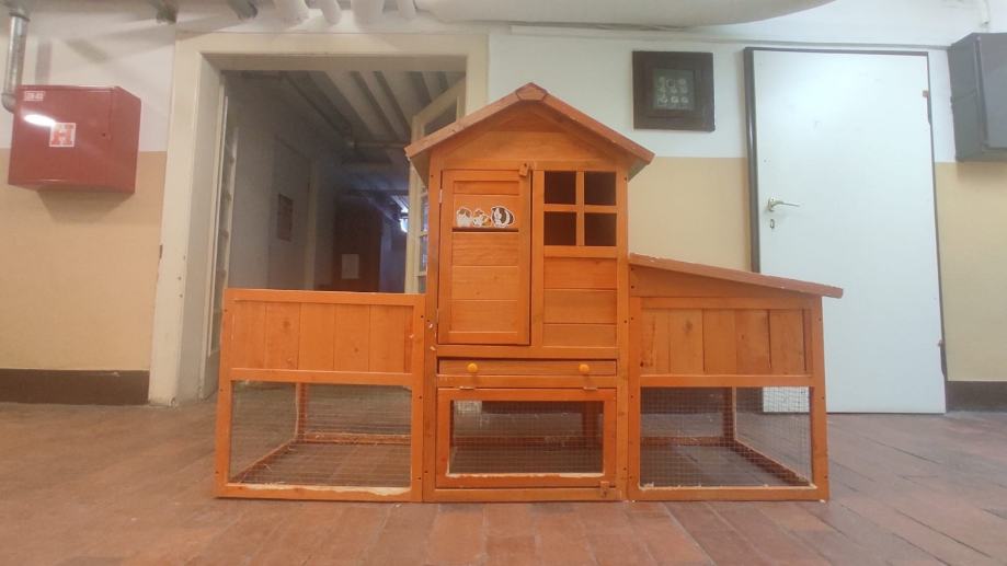 poklanja se drvena kućica za kuniće ili zamorčiće. korištena nekih godinu i pol, unatoč redovitom čišćenju drvo na katu je dosta zaflekano od mokraće, a na rubovima izvana je izglodana. nije u skroz raspadnom stanju i može se za nešto možda još iskoristiti. žao mi ju je baciti pa zato i oglašavam.