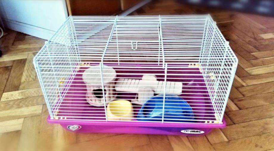 uz njega ide nešto opreme - posudica za hranu, igračke za rekreaciju (kotač, drvena klackalica... poslikat ću... okrugla kućica nije među njima, nju nemamo više, ali tu je kotač kog nema na slici)